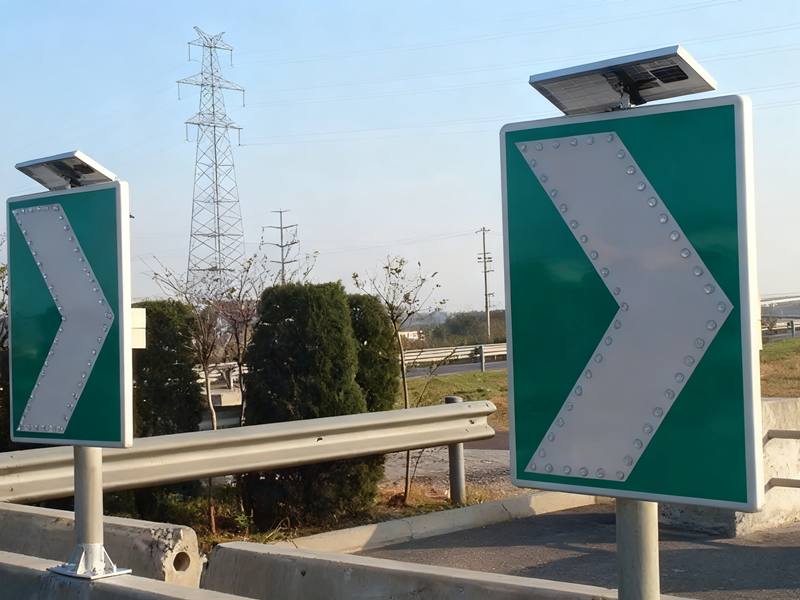 When used in conjunction with directional signs, linear guidance signs direct the direction of travel, show changes in the alignment of the road ahead, and remind drivers to drive carefully and pay attention to direction changes.